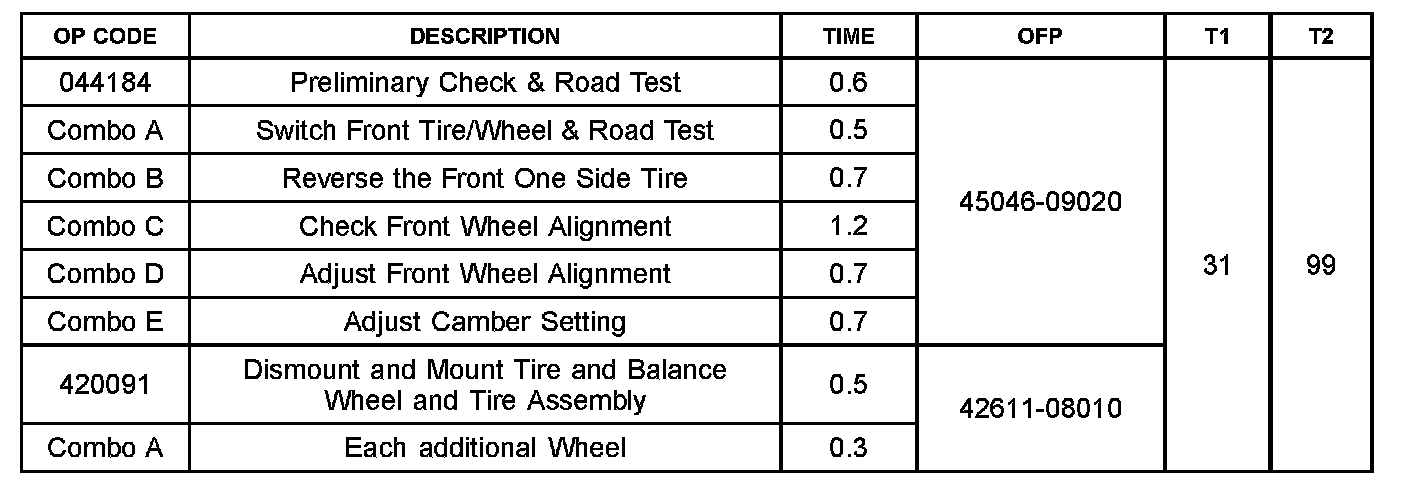 ^ If adjustment exceeds the specifications, uneven tire wear will result.