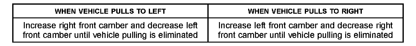 If the cross camber or caster is within the specified range (30' or less), noticeable vehicle pulling will not occur due to side-to-side differences in camber or caster.