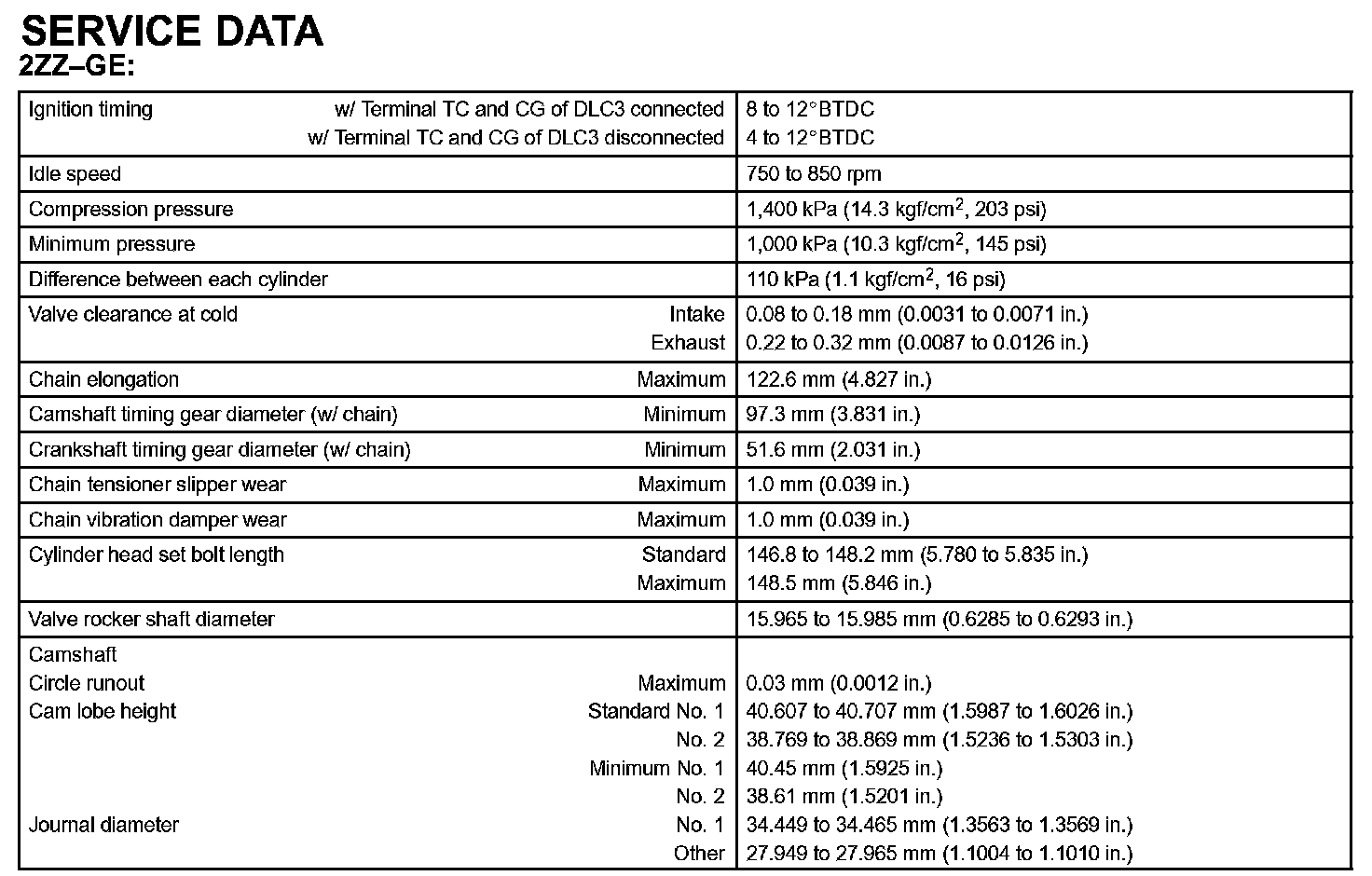 Engine Mechanical - Service Data Part 2: