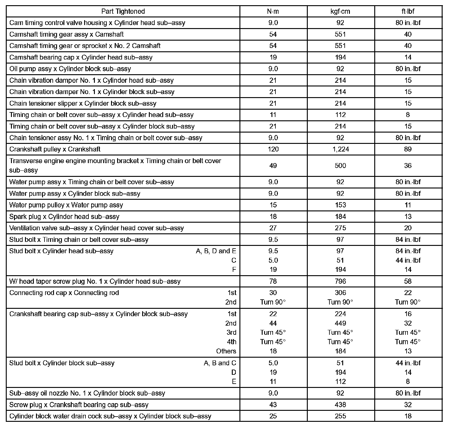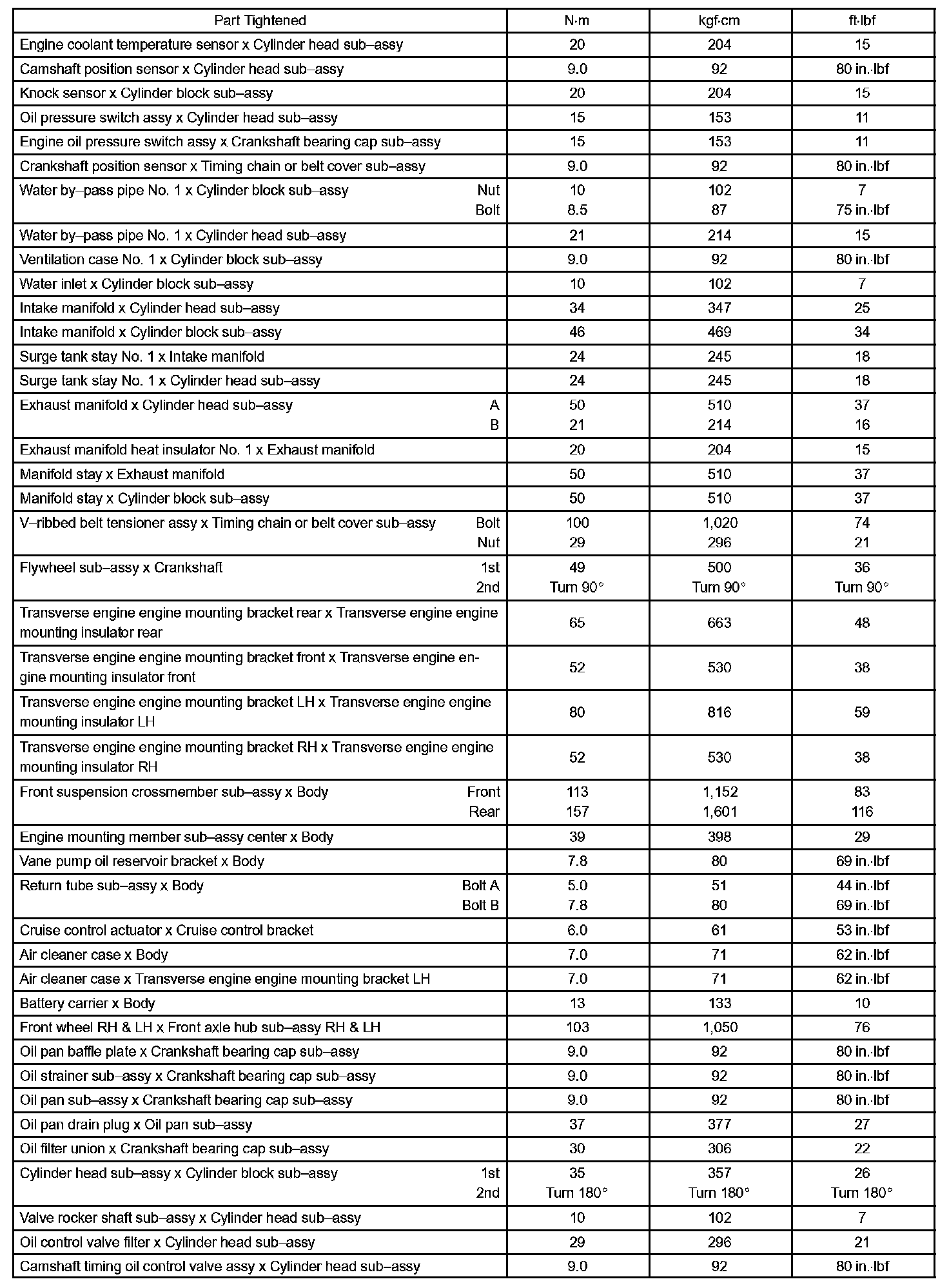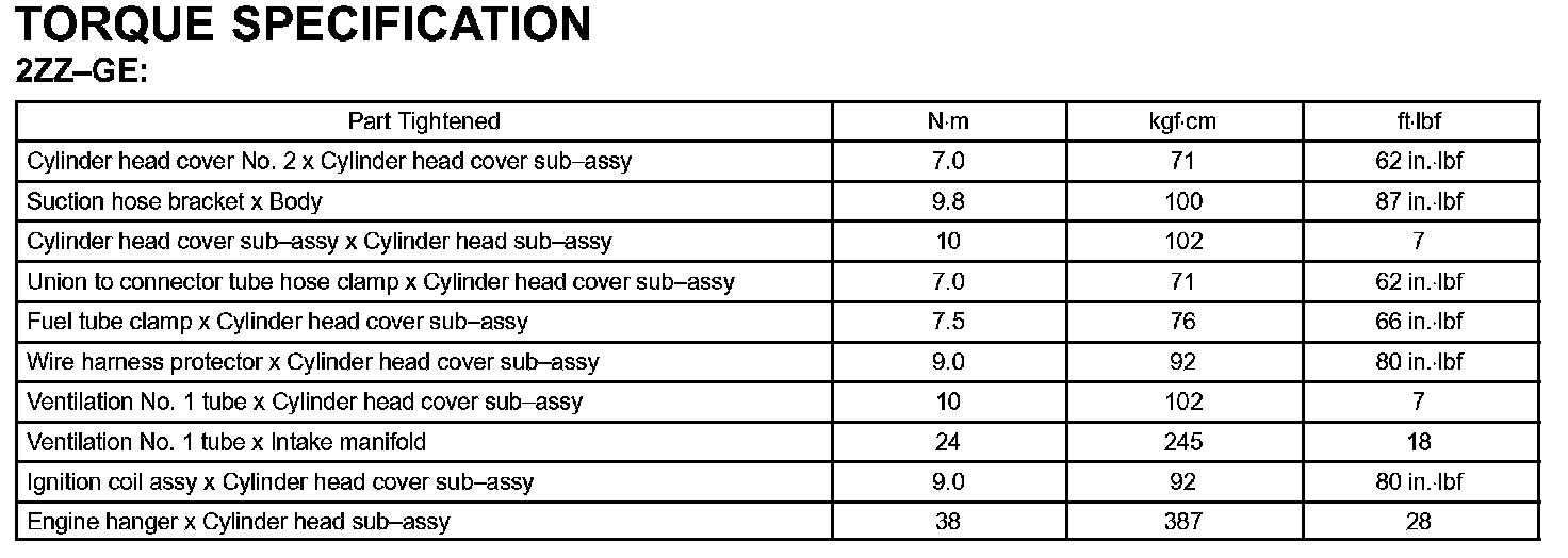 Engine Mechanical - Torque Specification Part 1: