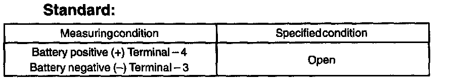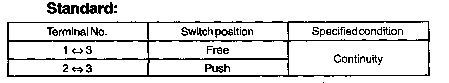 a. Inspect the switch continuity, as show in the illustration and table.
