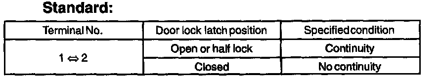 a. Apply battery voltage and inspect the window lock motor operation, as show in the illustration and table.