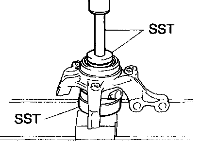 b. Using SST and a press, remove the hub LH bearing from the steering knuckle.