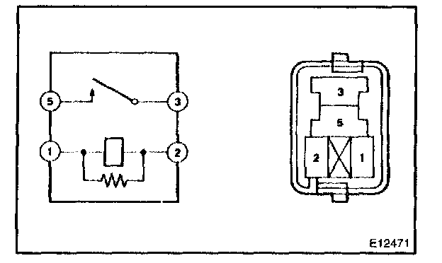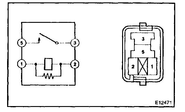 2. Using an ohmmeter, check that continuity exists between terminals 3 and 5 when the battery voltage is applied across terminals 1 and 2.