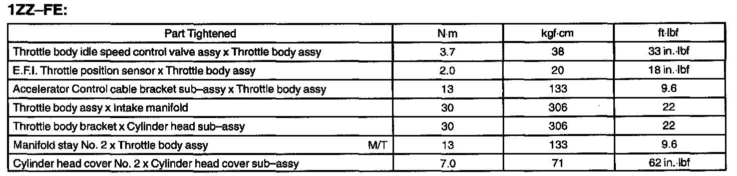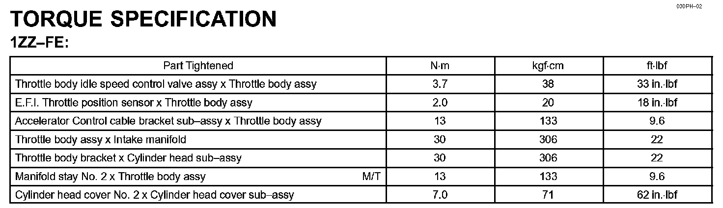 Engine Control System - Torque Specification:
