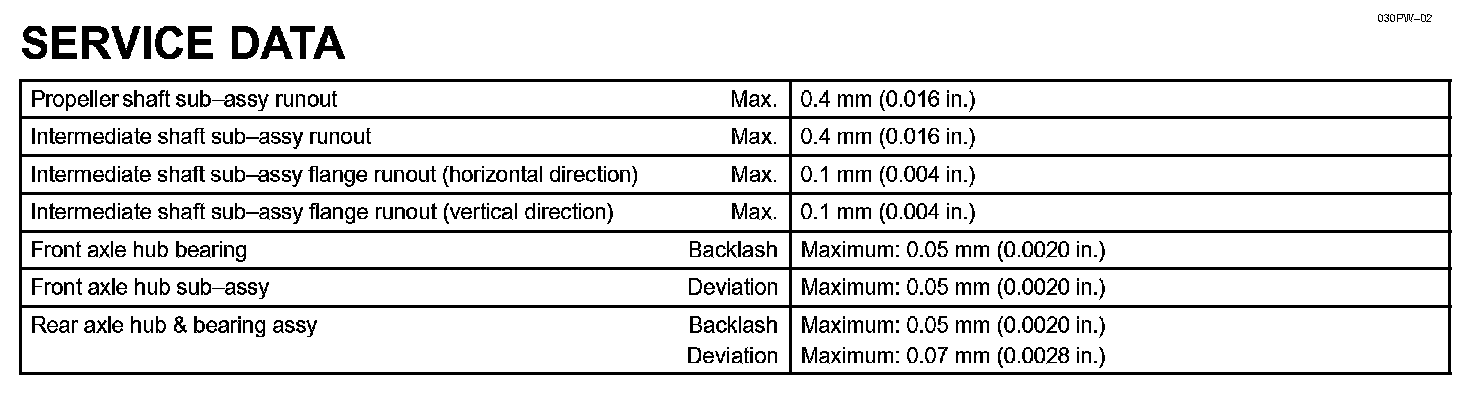 Drive Shaft/Propeller Shaft/Axle - Service Data: