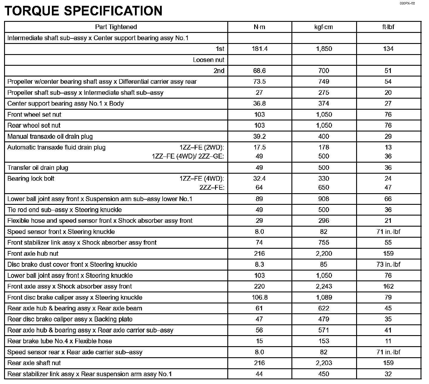 Drive Shaft/Propeller Shaft/Axle - Torque Specification: