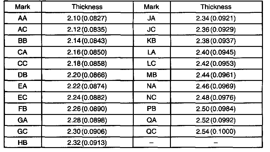 Washer thickness: mm (inch)