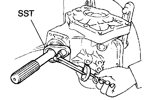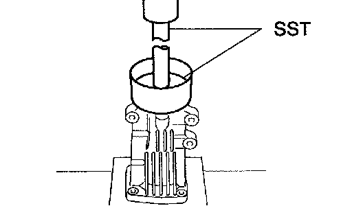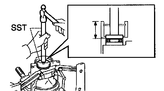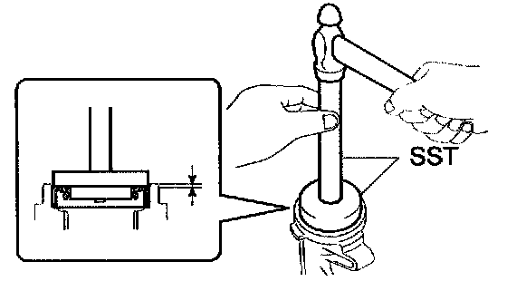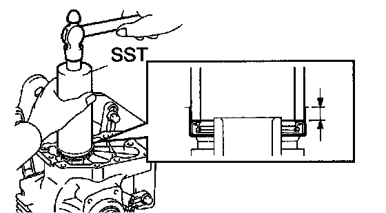 a. Using SST and a hammer, drive a new oil seal into the case until it reaches the position shown in the illustration.
