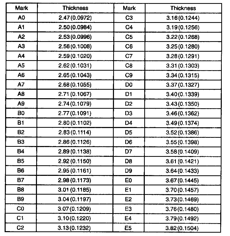 Washer thickness mm (in)