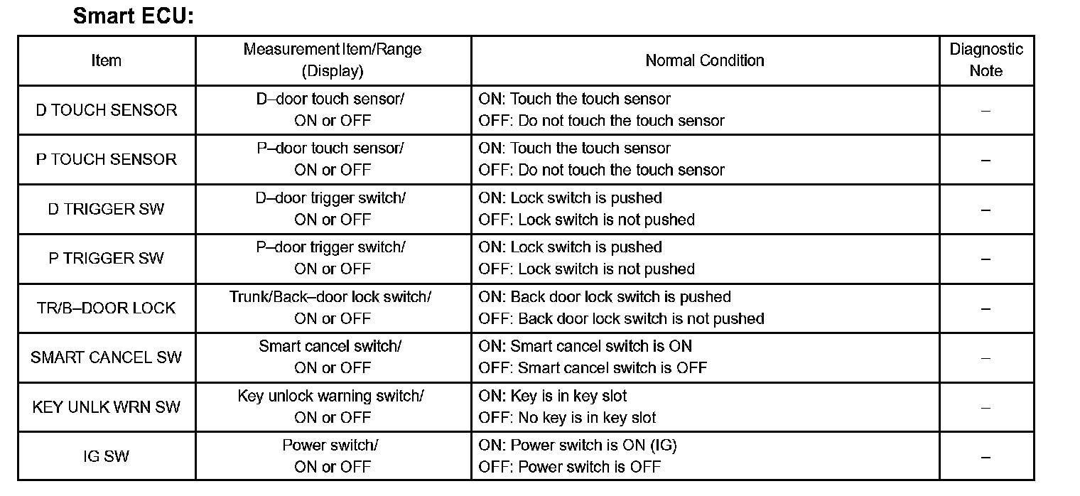 DATA LISTHINT: Using the hand-held tester DATA LIST allows switch, sensor, actuator and other item values to be read without removing any parts. Reading the DATA LIST early in troubleshooting is one way to shorten labor time.