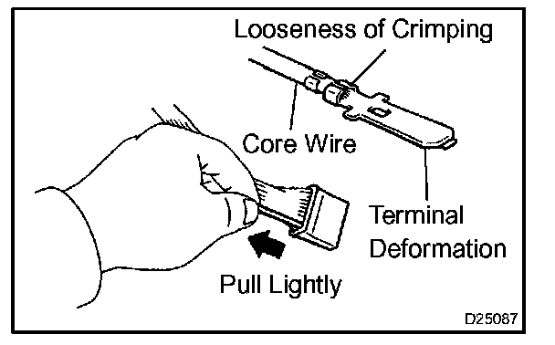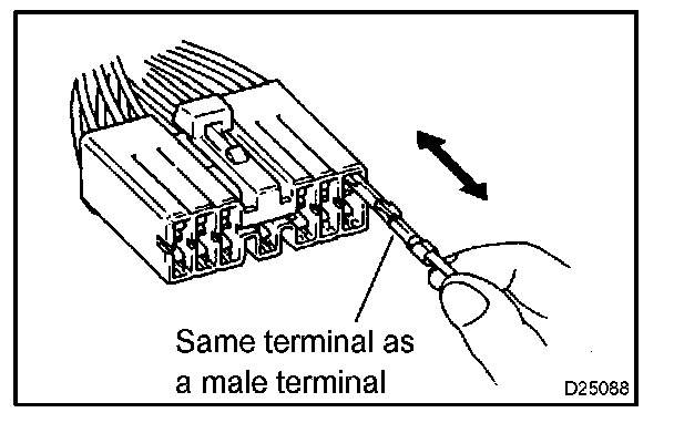 Prepare a spare male terminal. Insert it into a female terminal, and check for good tension when inserting and after full engagement.