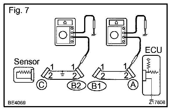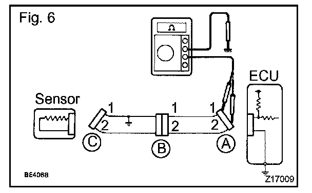 1. Disconnect connectors A and C and measure the resistance between them.