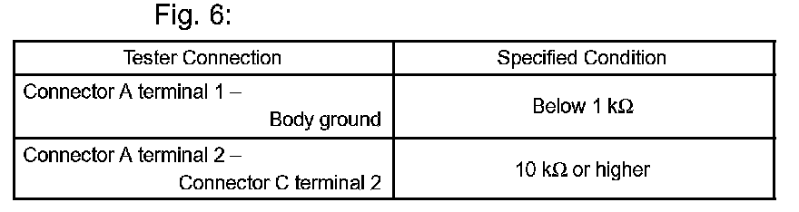 1. Disconnect connectors A and C and measure the resistance between terminals 1 and 2 of connector A and the body ground.
