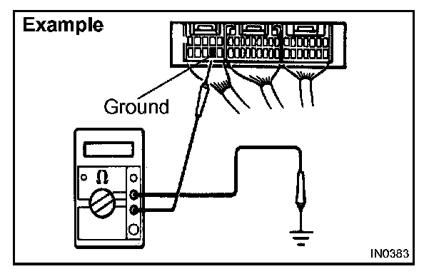 1. Measure the resistance between the ECU ground terminal and body ground.