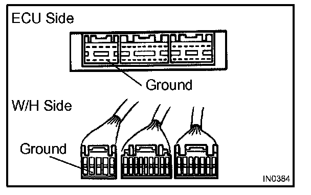 2. Disconnect the ECU connector. Check the ground terminals (on the ECU side and wire harness side) for evidence of bending, corrosion or foreign material. Lastly check the contact pressure of the female terminals.
