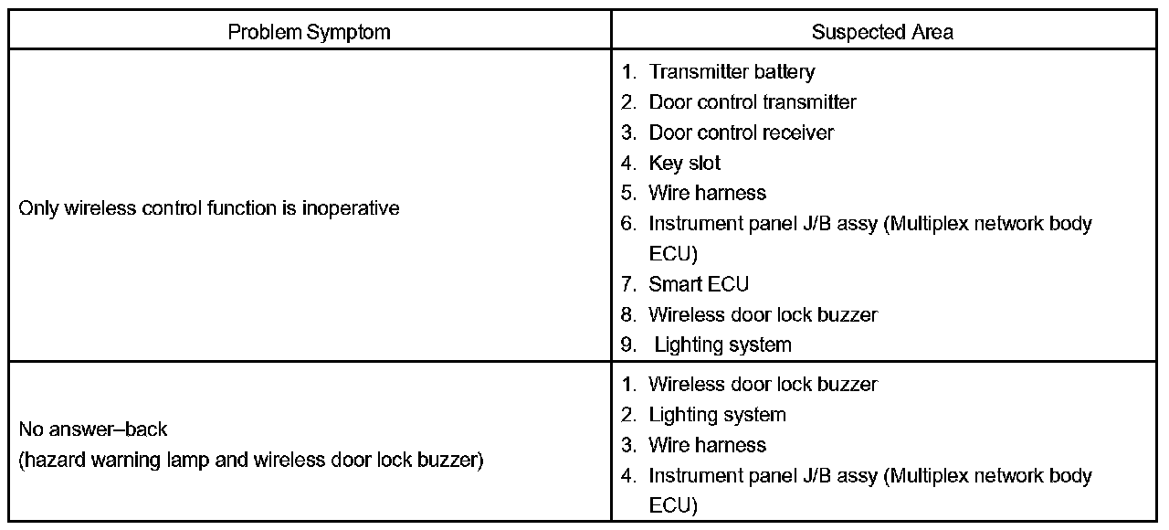 Problem Symptoms Table: