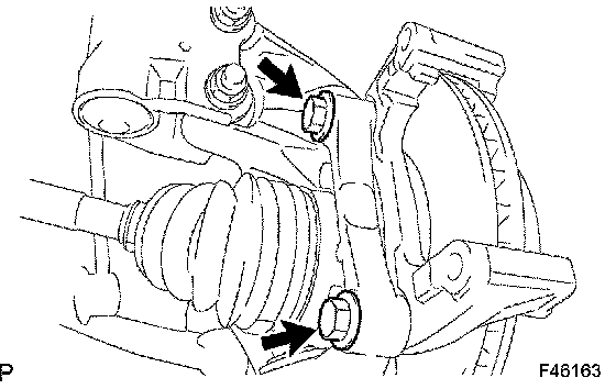 a) Remove the 2 bolts and front disc brake cylinder mounting.