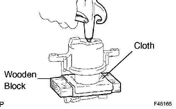 a) Place a wooden block wrapped in a cloth between the front disc brake piston and front disc brake cylinder to prevent them from being damaged.