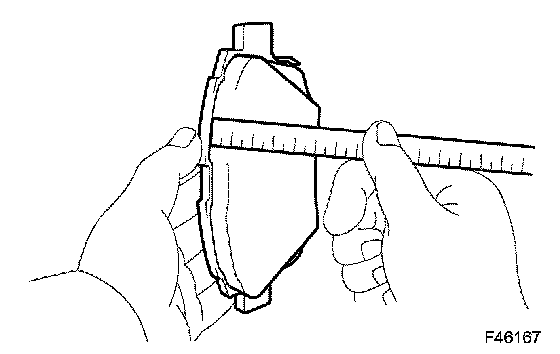 HINT: If the disc brake pad thickness is at the minimum or less, replace the disc brake pad.