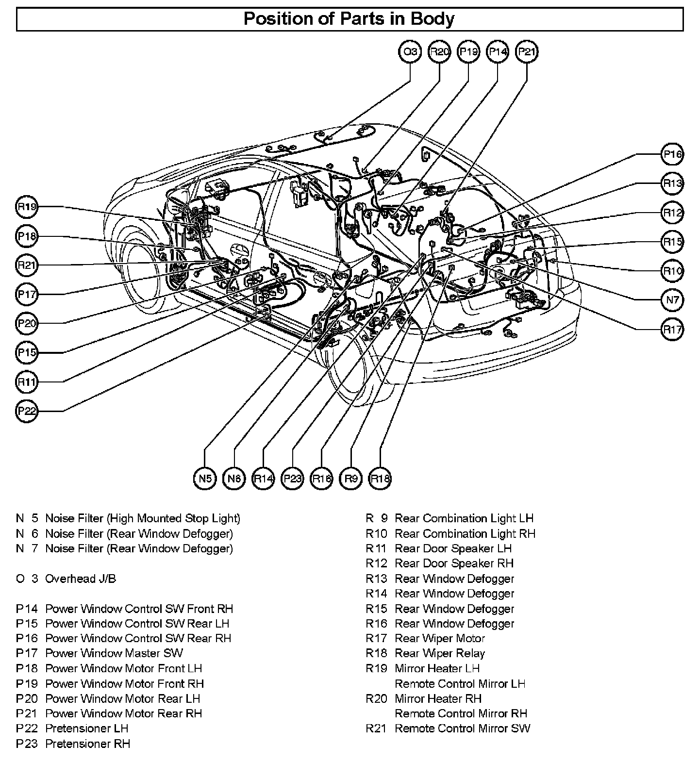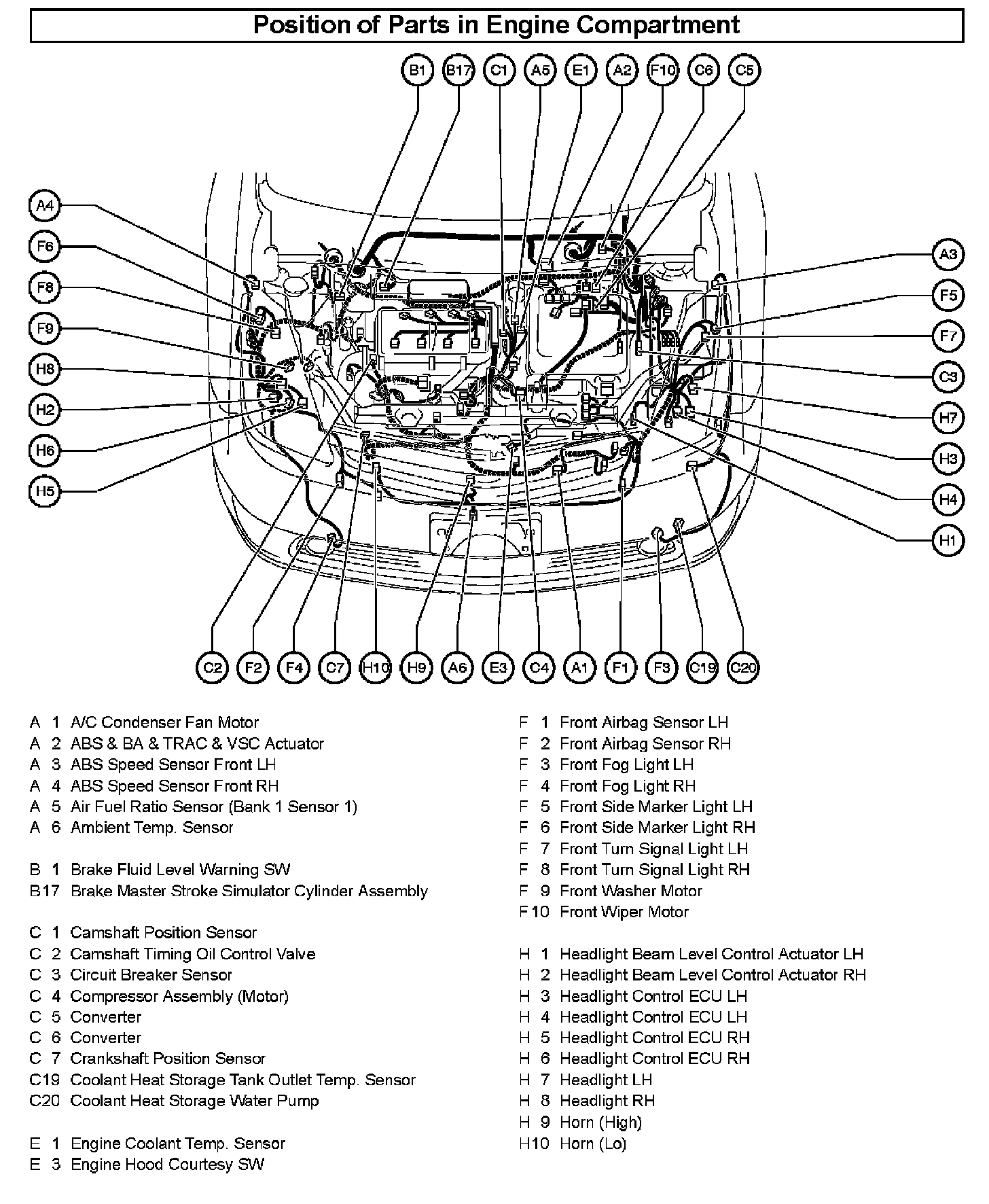 Position of Parts In Engine Compartment