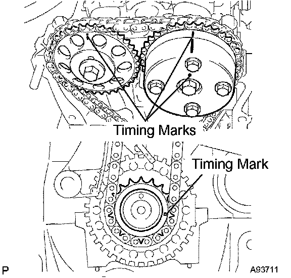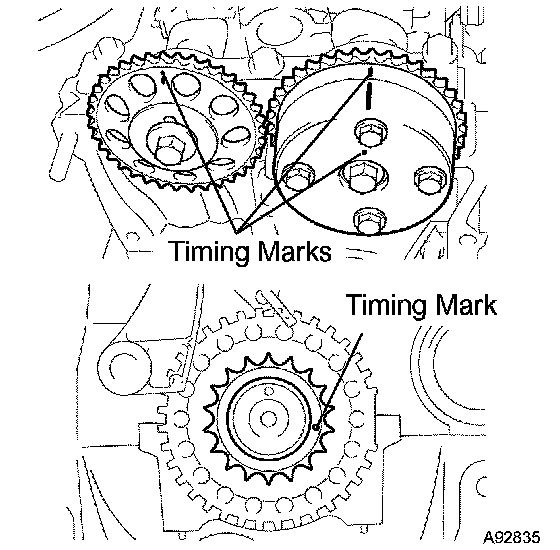 a. Check that the timing marks are located as illustrated.
