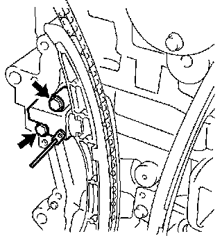 5. Install the chain tensioner with the 2 bolts.