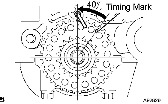 ^ If turning the camshaft with the chain removed, turn the crankshaft counterclockwise by 40° from the TDC/compression.