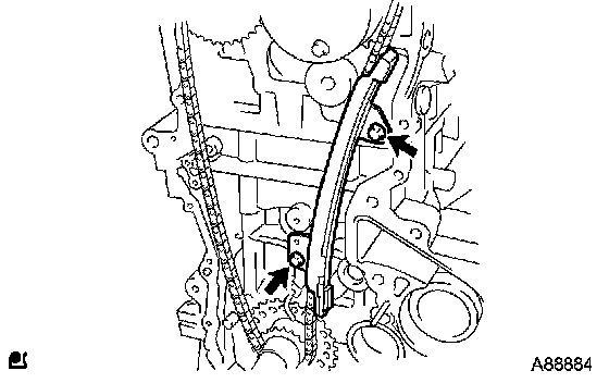 d. Install the chain vibration damper with the 2 bolts.