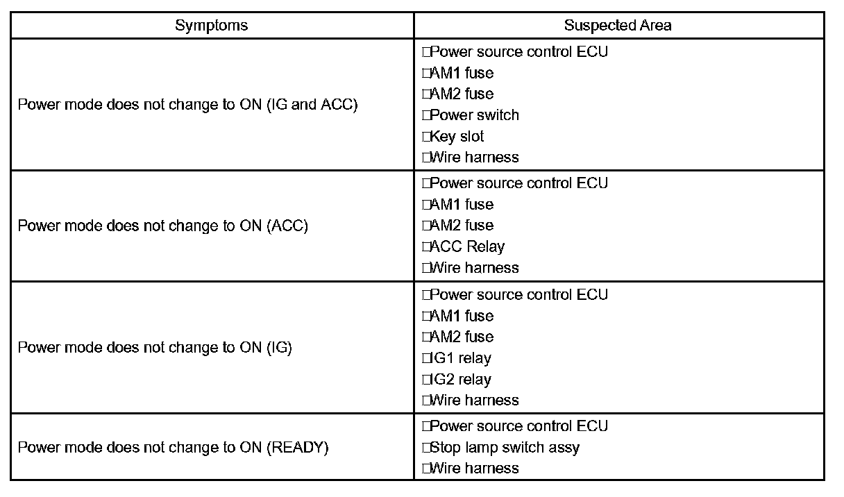 Problem Symptoms Table: