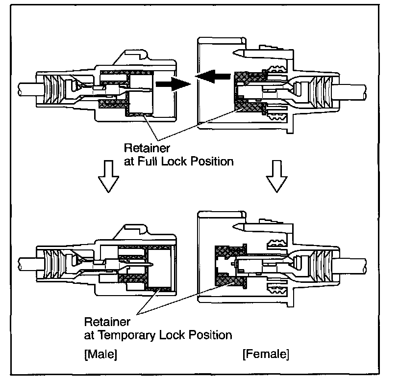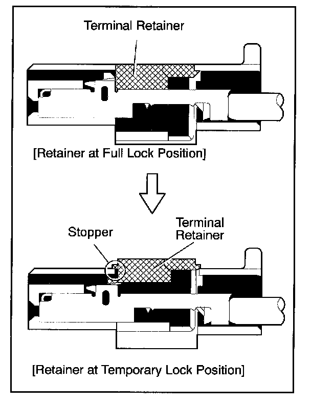 NOTE: Do not remove the terminal retainer from connector body.