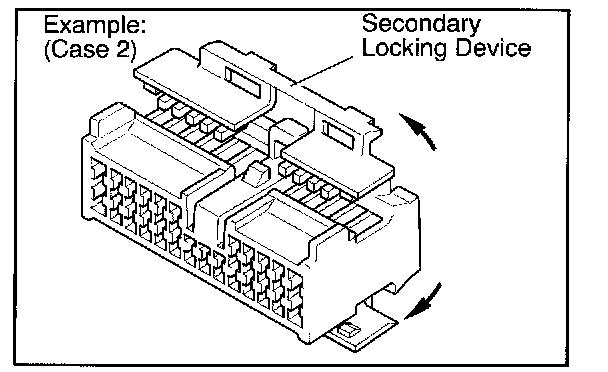 a. Locking device must be disengaged before the terminal locking clip can be released and the terminal removed from the connector.