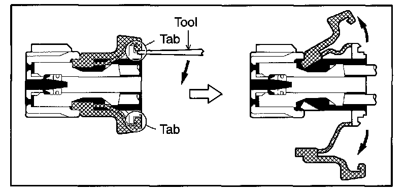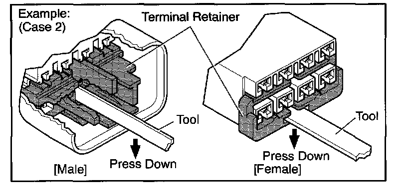 Type which cannot be pulled as far as Power Lock insert the tool straight into the access hole of terminal retainer as shown.