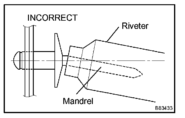 - Do not prize the riveter. The riveter will be damaged and the mandrel will bend.