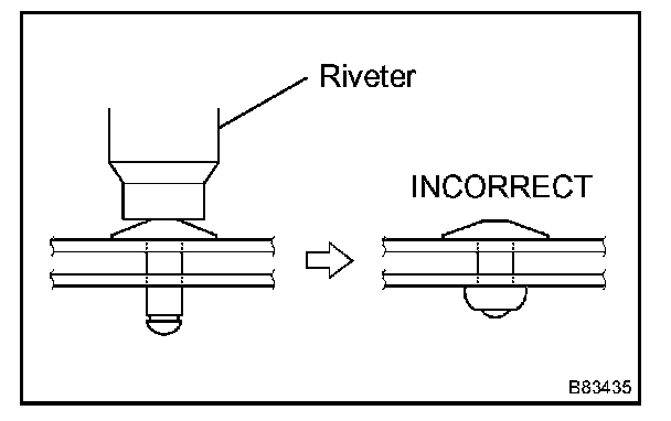 - Do not till the riveter when fastening the rivet to the tarpaulin hinge link as this will cause the rivet to be loose.