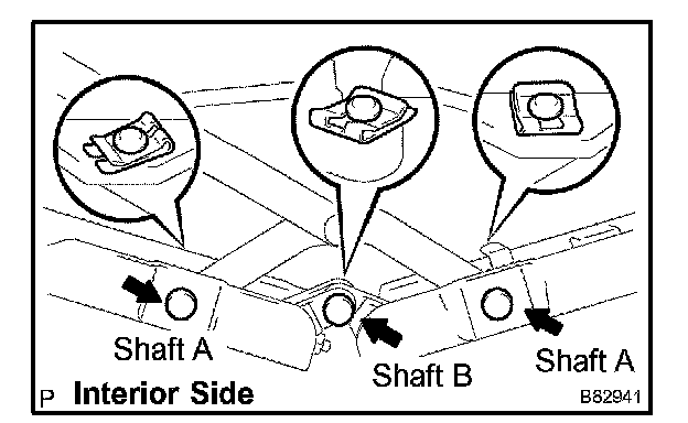 a. Install the 4 shafts (A and B) to the tarpaulin rail pivot bracket and tarpaulin rail, as shown in the illustration.