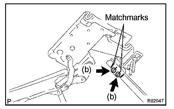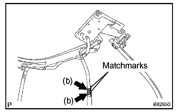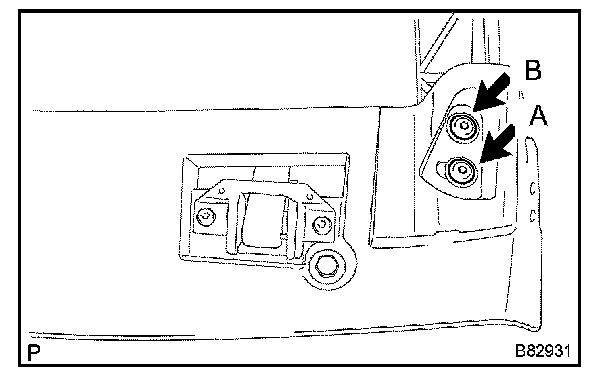 b. On the rear rail bow bracket, uniformly loosen nuts A and B. Then remove nut A.