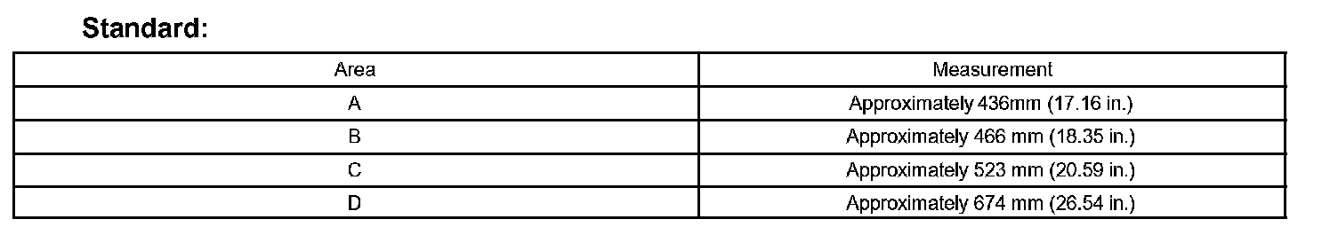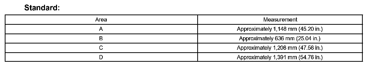 - The standard values are for reference only. Measurements do not have to be exactly as shown in the illustration.