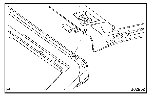b. Install the headlining to the front rail with the headlining clip.