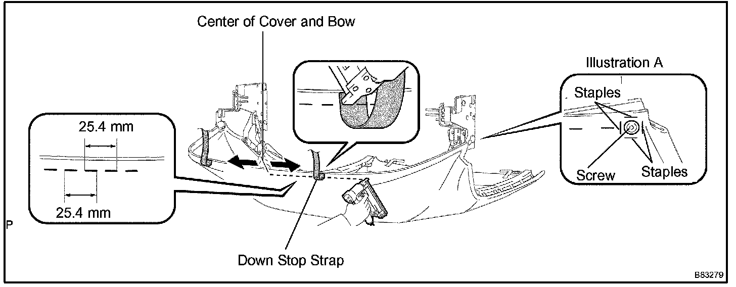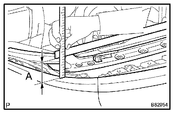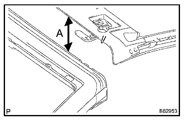 b. Measure the distance (A) between the bottom surface of the No.1 tarpaulin bow and the top surface of the header weather seal, as shown in the illustration.