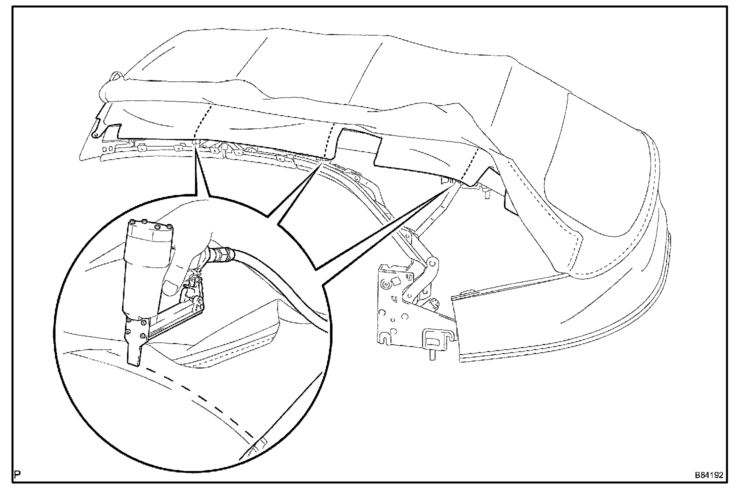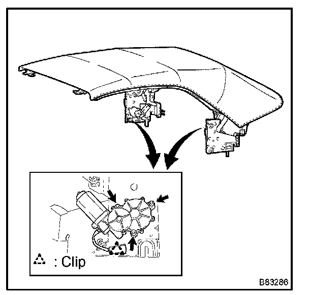 p. Install the convertible roof motor's connecter clip to the pivot bracket.