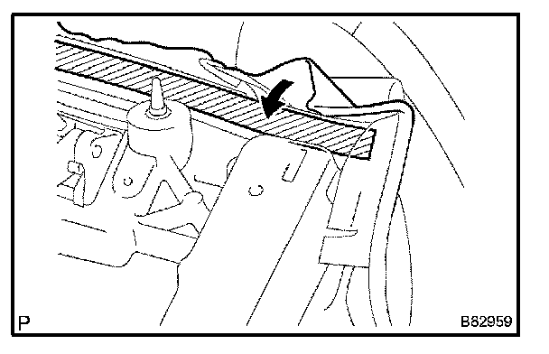 a. Push the tarpaulin headlining into the No.2 bow.
