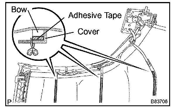 r. Remove the adhesive tape from the No.1 tarpaulin bow.