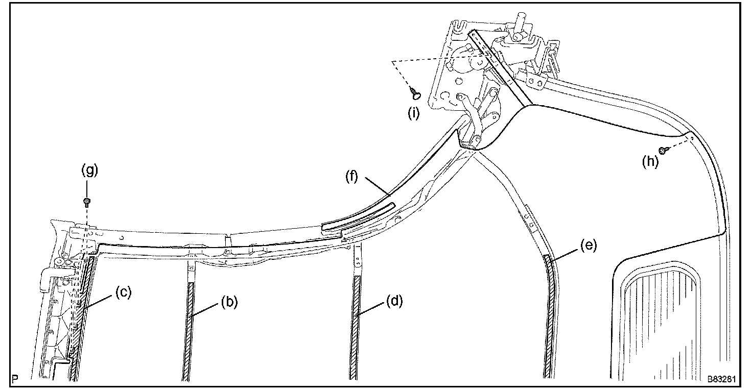 g. Using a torx wrench (T25), install the screw, clip and tarpaulin headlining into the No.5 bow.
