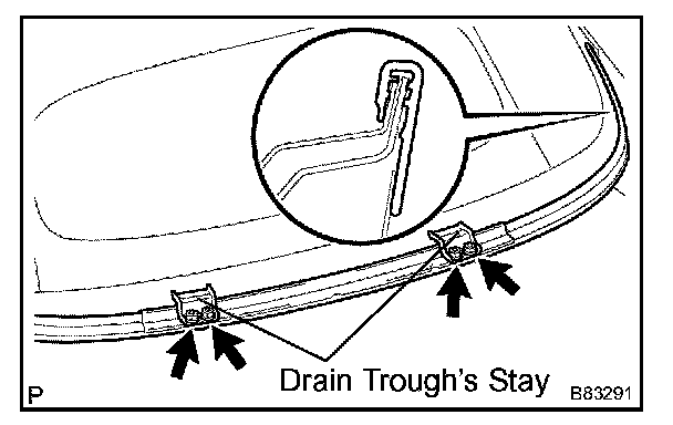 1. Install the drain trough to the body panel as shown in the illustration.
