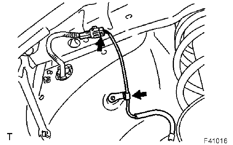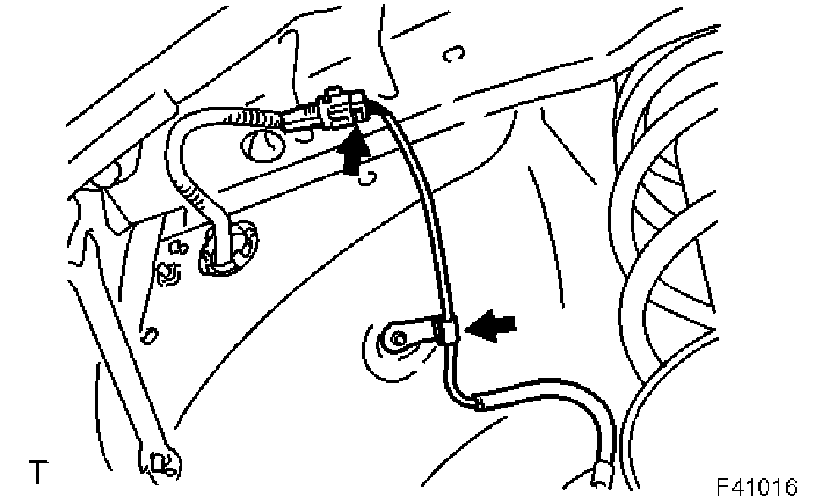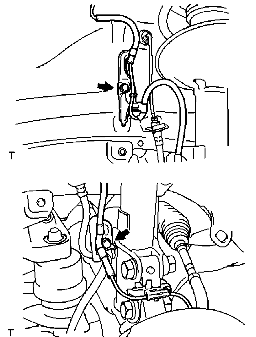 b. Remove the 2 clamp bolts and disconnect the speed sensor harness from the body and shock absorber.