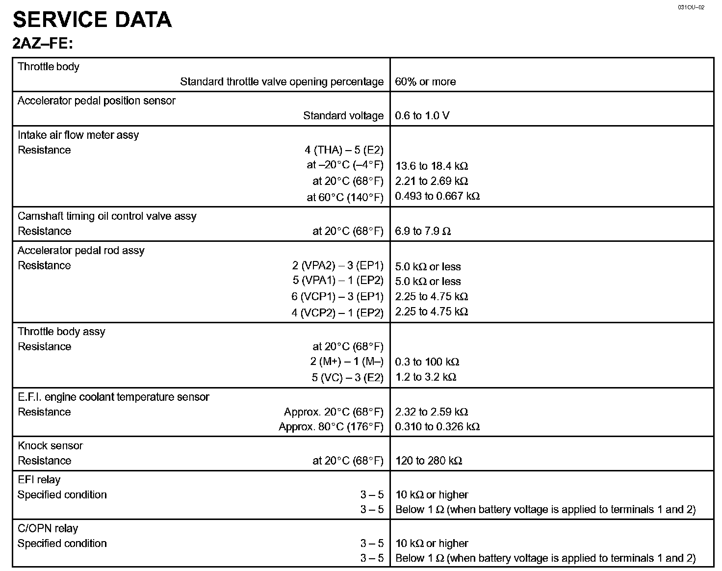 Engine Control System - Service Data: