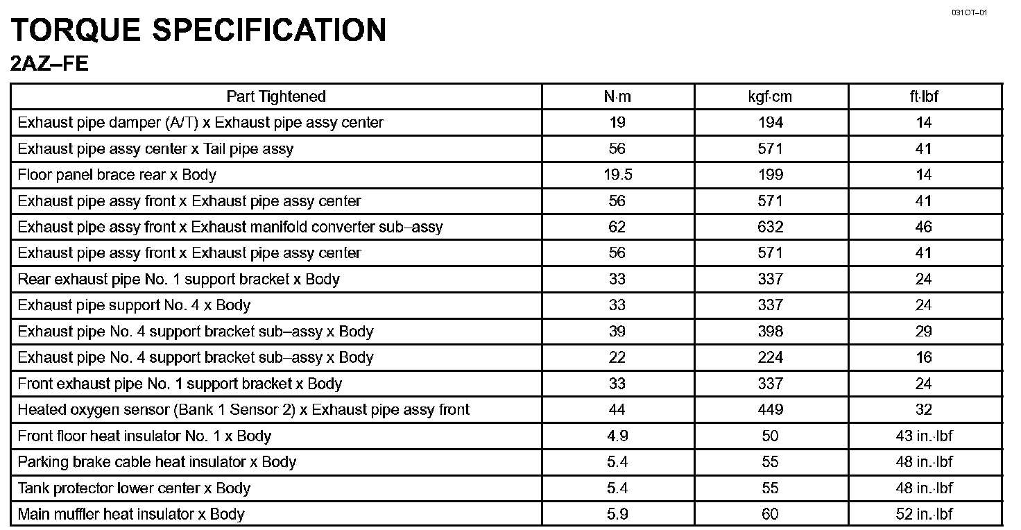 Exhaust - Torque Specification: