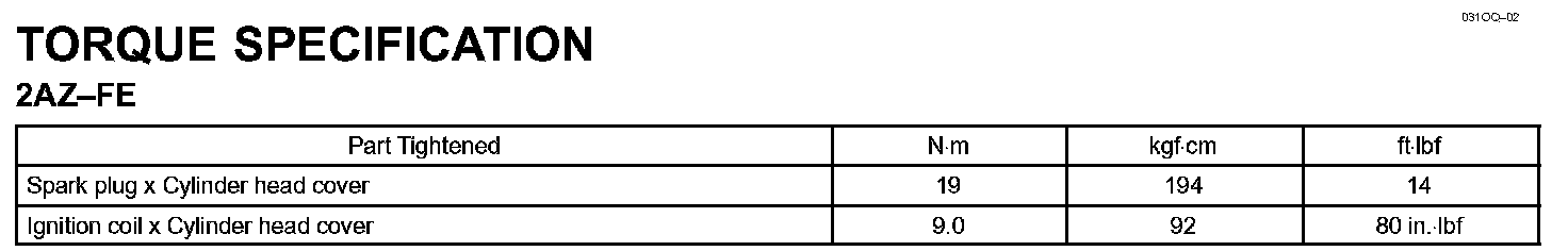 Ignition - Torque Specification: