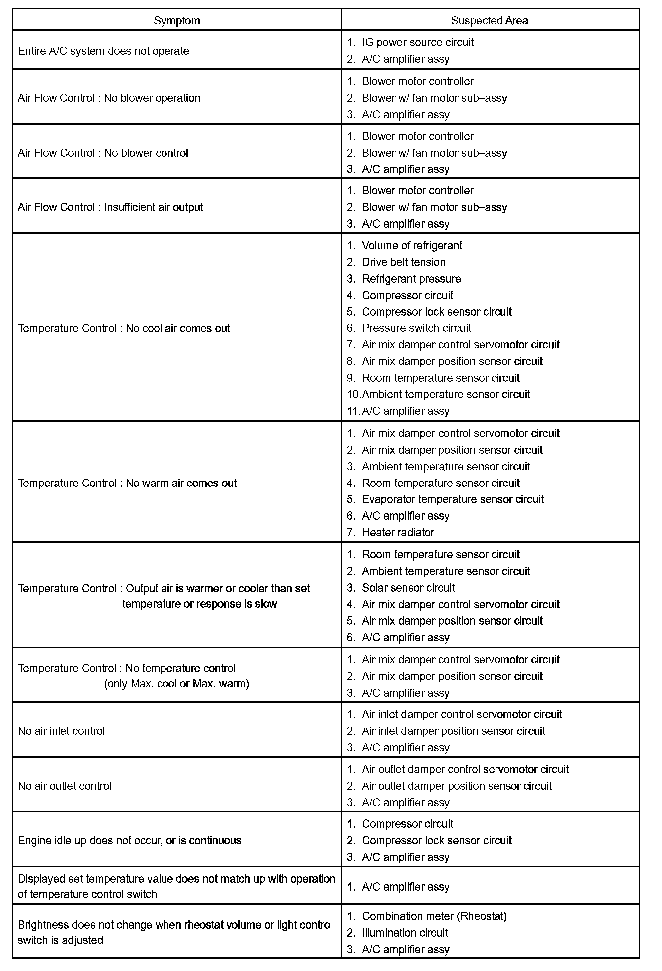 Problem Symptoms Table Part 2: